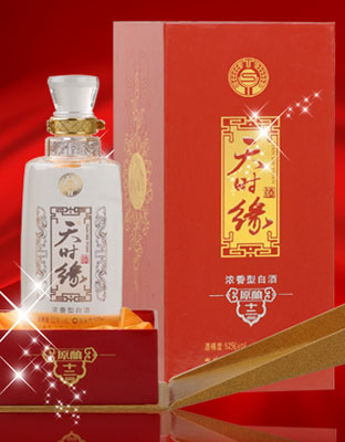 天時緣八年:酒精度:38/45/52vol 凈含量:500ml 具有酒質香濃、醇厚、味陳、甜爽、尾凈舒適、風格優美的特點。 天時緣酒釀造工藝: 郎酒(天時緣),產自川黔交界有“中國美酒河”之稱的赤水河畔,是目前中國一家仍堅持采用山泉水釀造的白酒企業。從漢代的“枸醬酒”、宋朝的“鳳曲法酒”、清末的“絮志酒廠”、“惠川糟房”到“集義糟房”的“回沙郎酒”;從“回沙工藝”到“盤勾勾兌”,郎酒人恪守古訓,傳承釀造古法,形成了“高溫制曲、兩次投糧、晾堂堆積、回沙發酵、九次蒸釀、八次發酵、七次取酒、經年洞藏、盤勾勾兌”的獨特工藝。特別是儲藏郎酒的天寶洞、地寶洞面積近1.42萬平方米,為當今世界的天然白酒酒庫,洞內常年恒溫,經年累月的洞藏,使郎酒更加醇香。