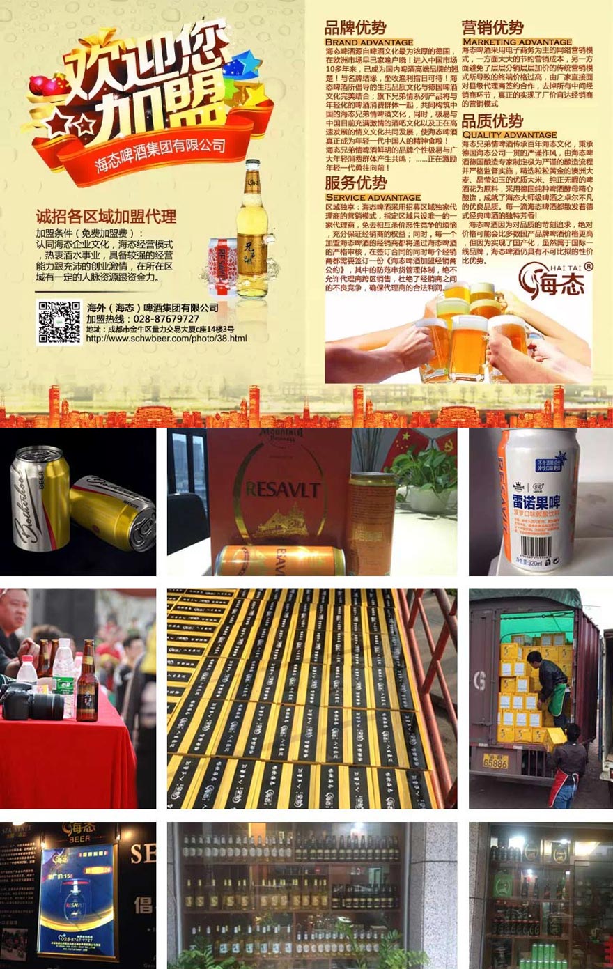 四川海態啤酒有限公司成立于2014年主要從事啤酒銷售業務,公司總部榮居成都。公司現擁有有專業市場管理和營銷人員約600余人,分布在全國各大、中城市。公司產品覆蓋東南亞市場,現已與國內800余家客戶合作,創造了一個又一個的奇跡。 四川海 態 啤酒有限公司,致力于國內國際市場的開發,我們擁有專業的策劃團隊,在各省會城市成立辦事處,保證公司與市場的無縫銜接,從而及時有效的對市場情況作出反應,為了配合各地代理商的工作,我們制定了詳細的運營策略、政策支持及執行方案,保證代理商省心、省力、省開支的開展工作,相信以我們的產品優勢、價格優勢、政策優勢及公司強大的實力背景,我們將會成就越來越多的傳奇。 四川海態啤酒有限公司是公司下設市場部、營銷部、招商部、財務部、物流部、售后部、策劃部、設計部等八個部門及21個市級辦事處。 國際公司的鼎立支持,的體現,是全國各地代理商合作成功的起點!   產品品牌化,口感宜地化,品種暢銷化,為您的發展提供了良好的保障。公司以質量求生存,以信譽謀發展,以市場為導向,不斷優化產品結構,嚴把質量關,精益求精,為市場提供具有國際標準的高品質產品及超前的營銷方案;你的滿意是我們永恒的主題! 熱忱歡迎全國各地新老客戶來公司考察、洽談、指導工作!我們真誠期待:全國各地業界精英與我們合作,同成長、共發展!我們的宗旨:一切為了客戶,客戶是我們的一切!