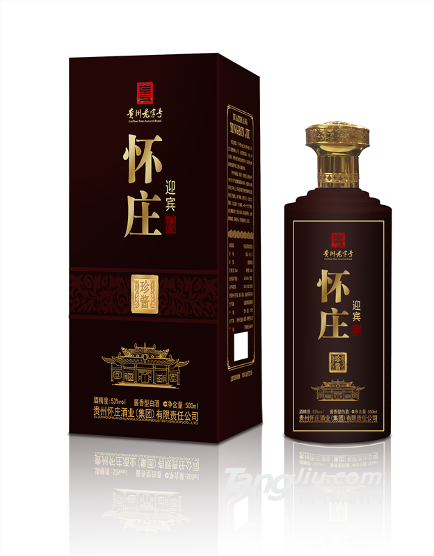 懷莊迎賓酒產于貴州省仁懷市茅臺鎮。它以糯高粱,小麥,水為原料,利用得天獨厚的自然環境,用茅臺鎮獨特的醬酒傳統工藝精心釀造而成。