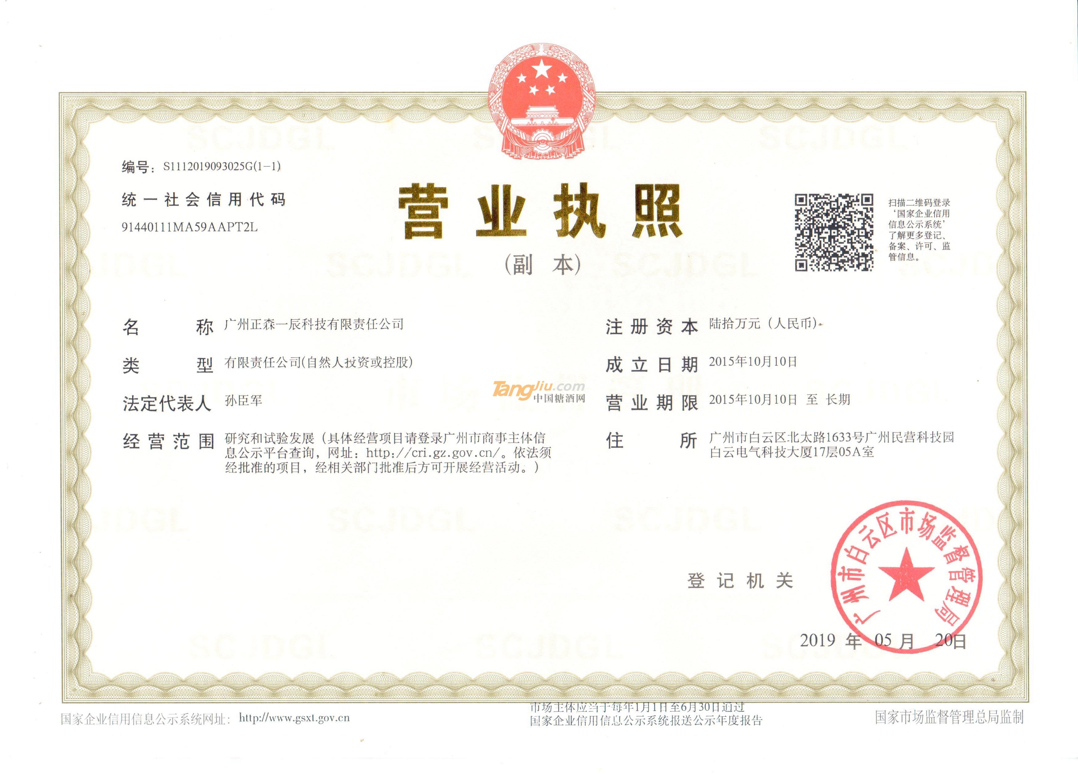 當前位置:糖酒網首頁 ? 飲料招商 ? 廣州正森一辰科技有限責任公司 ? 誠信認證